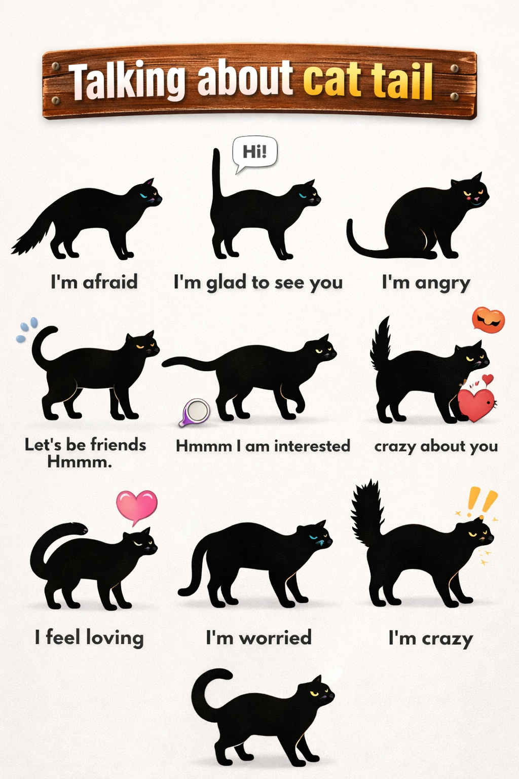Cats are often mysterious creatures, with their independent nature and subtle ways of communicating. While they might not speak in words, they have a rich language of body signals that help them express their feelings, needs, and even their moods. One of the most expressive parts of a cat’s body is their tail, which can convey a range of emotions from happiness to frustration, and everything in between.Understanding your cat’s tail language is key to building a stronger bond with your feline companion and responding appropriately to their needs. In this guide, we’ll break down what different tail positions and movements can mean, helping you to better understand your cat’s emotions and enhance your communication with them.Why Cats Use Their Tails for CommunicationCats communicate using their tail for a variety of reasons:Balance: Cats use their tails to help maintain balance when climbing or making sharp turns.Mood Indicators: A cat’s tail is one of their primary ways of expressing emotions and intentions.Social Signaling: Cats use their tails to communicate with other animals and humans, letting them know if they’re feeling playful, aggressive, threatened, or relaxed.By learning the subtle language of your cat’s tail, you can gain a deeper understanding of how they’re feeling in any given moment.Cat Tail Positions and What They Mean1. Straight Up Tail (with a slight curve at the top)Mood: Happy, Confident, CuriousWhat it means: A tail held high, often with a slight curve at the tip, is a sign of confidence and happiness. Cats hold their tails up when they feel secure and positive. This posture typically indicates that your cat is feeling comfortable in their environment and is open to interaction. It’s a sign that they trust you and feel at ease.Tip: If your cat approaches you with their tail up, they may be seeking affection or simply want to greet you!2. Tail Straight Up with a Quiver or VibratingMood: Excited, AffectionateWhat it means: When your cat’s tail quivers or vibrates while held upright, it’s usually a sign of excitement or affection. Cats often do this when greeting their favorite humans or other cats. This behavior is especially common in mating behavior, but it can also be a sign of happy recognition and affection.Tip: Take this as a sign that your cat is happy to see you and may want attention or cuddles!3. Low, Straight TailMood: Neutral or SubmissiveWhat it means: A tail that’s held low and straight usually indicates that your cat is feeling neutral or possibly submissive. It’s a non-threatening posture, but it can also be a sign that your cat is feeling cautious or unsure about a situation.Tip: If your cat’s tail is straight but low, they may be observing something in their environment and trying to determine if it’s safe to approach.4. Tucked TailMood: Fearful, Anxious, SubmissiveWhat it means: A tail tucked tightly between your cat’s legs is a strong sign of fear or anxiety. Cats will often adopt this posture when they feel threatened, scared, or submissive. It’s a way for them to protect their sensitive underbelly and indicate that they do not want to engage in conflict.Tip: If your cat’s tail is tucked, try to remove any stressors in their environment and give them some time to relax.5. Puffed-Up Tail (Feathered or Bushy)Mood: Territorial, Agitated, DefensiveWhat it means: A puffed-up tail is a clear indication that your cat is feeling threatened or agitated. This often happens when they are scared, angry, or in a defensive stance. A cat’s tail will puff up to make them appear larger and more intimidating to perceived threats.Tip: If your cat’s tail is puffed up, back off slowly and give them space to calm down.6. Slowly Swishing or Flicking TailMood: Irritated, Focused, AnnoyedWhat it means: A cat that is slowly swishing or flicking their tail back and forth is usually showing irritation or frustration. It can also indicate that they are focused on something, such as a toy or prey, or that they’re preparing to act.Tip: If your cat’s tail is flicking or swishing slowly, give them space and avoid overstimulating them. They might need some quiet time.7. Fast-Twitching or Flicking TailMood: Angry, AggressiveWhat it means: A fast-twitching or flicking tail can indicate that your cat is getting agitated, angry, or upset. This usually happens when they’re feeling frustrated or preparing for an altercation. If their tail is moving quickly and erratically, they are likely on edge.Tip: If you see this behavior, it’s best to back off slowly and give your cat some space to cool down.8. Curled TailMood: Content, RelaxedWhat it means: A cat that curls their tail around their body (often when resting) is typically feeling content and relaxed. It’s a sign of comfort, as cats often curl up like this when they are in a safe and secure environment.Tip: If you see your cat curled up with their tail wrapped around them, they are probably enjoying some downtime and are not in the mood for play.9. Wagging Tail (Side to Side)Mood: Frustrated, Annoyed, or PlayfulWhat it means: Unlike a slow swish, when a cat’s tail is moving side to side quickly, it typically means they are frustrated or annoyed. In some cases, they might be indicating that they are in a playful mood, especially if they are preparing to pounce or engage in interactive play.Tip: Watch the overall body language. If the tail wagging is accompanied by wide eyes or crouching, they may be preparing for play. If their body is tense, they may be frustrated or irritated.Understanding Your Cat’s Tail for Better BondingBy paying attention to your cat’s tail movements and positions, you can gain a deeper understanding of their emotional state and provide them with the care they need. Here are some ways to use tail language to strengthen your relationship with your cat:Respect Their Boundaries: If your cat’s tail is tucked or puffed up, they may need space. Respect their bound