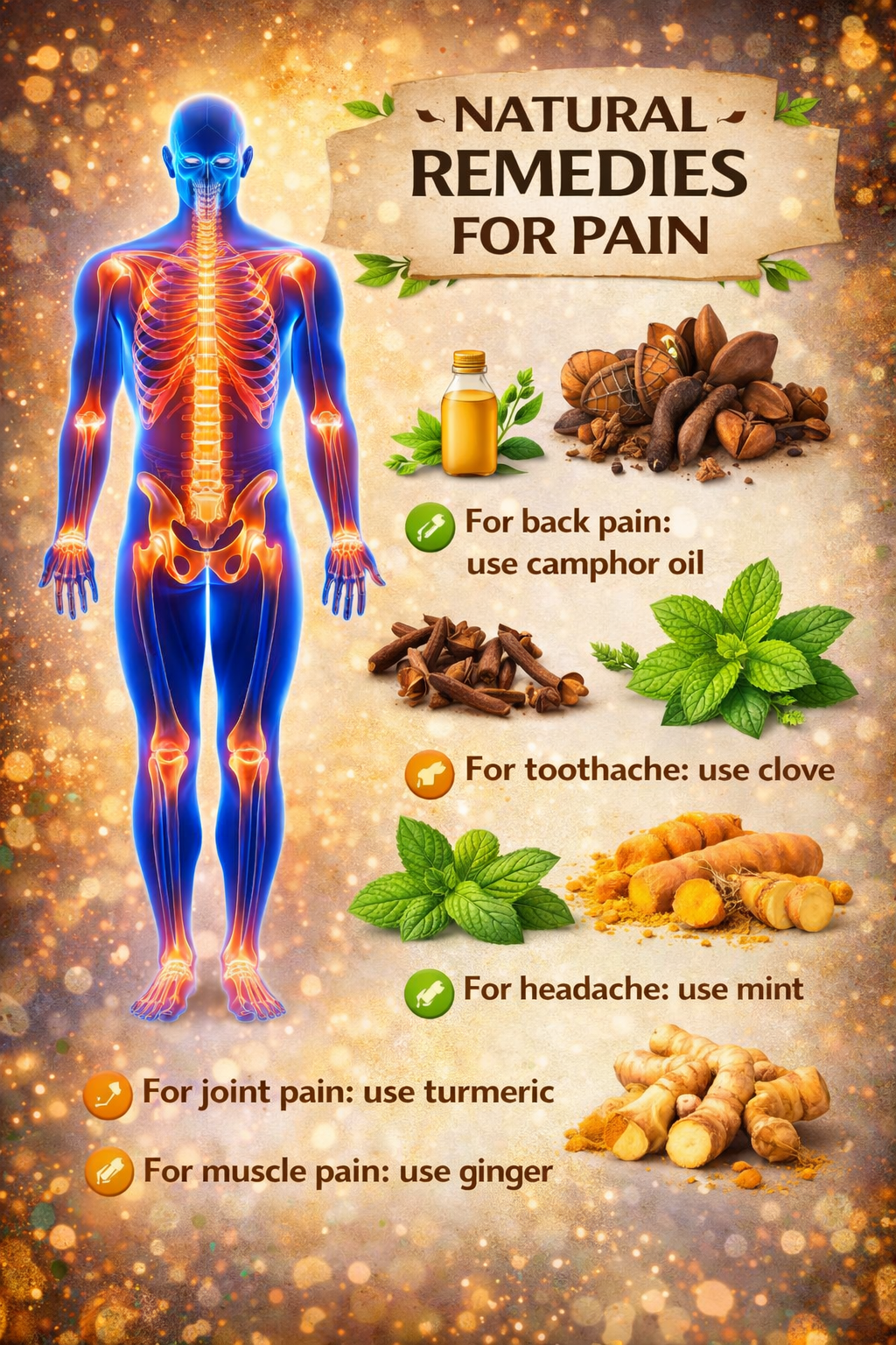 Aches and pains are part of everyday life—whether it’s a headache after a long day, sore muscles from physical activity, or joint stiffness that comes with age. While over-the-counter medications can offer quick relief, many people in the United States, United Kingdom, and Canada are turning to natural remedies for common pains as safer, gentler, and more sustainable alternatives.Natural pain relief focuses on supporting the body’s healing process rather than masking symptoms. Herbs, foods, heat therapy, and simple lifestyle adjustments have been used for centuries and are now gaining renewed attention through modern research. In this article, we’ll explore effective natural remedies for common pains, how they work, and practical ways to use them in daily life.Understanding Pain and Natural ReliefPain is the body’s signal that something needs attention. It may be caused by inflammation, muscle tension, nerve irritation, or poor circulation. Many natural remedies work by reducing inflammation, improving blood flow, or relaxing tense muscles—addressing the root of discomfort rather than just dulling the sensation.Choosing natural remedies for common pains can also help reduce reliance on frequent medication use and support long-term wellness.🌱 Natural Remedies for Headaches and MigrainesHydration and ElectrolytesDehydration is a leading cause of headaches. Drinking water consistently throughout the day—and adding natural electrolytes when needed—can significantly reduce headache frequency.Herbal TeasCertain herbal teas help relax blood vessels and calm the nervous system:Peppermint teaGinger teaChamomile teaThese options are gentle, caffeine-free, and easy to incorporate daily.Cold or Warm CompressesApplying a cold compress to the forehead or a warm compress to the neck can ease tension headaches by relaxing muscles and improving circulation.🌿 Natural Remedies for Muscle Pain and SorenessEpsom Salt BathsEpsom salt baths are one of the most popular natural remedies for common pains related to muscle soreness. Magnesium absorbed through the skin helps relax muscles and reduce inflammation.Gentle StretchingLight stretching increases blood flow to sore muscles and prevents stiffness. Yoga and mobility exercises are especially effective after physical activity.Heat TherapyHeat pads or warm showers help relax tight muscles, making them ideal for chronic muscle pain or stress-related tension.🌼 Natural Remedies for Joint Pain and InflammationAnti-Inflammatory FoodsCertain foods naturally reduce inflammation and support joint health:GingerTurmericFatty fish (rich in omega-3s)Leafy greensRegular consumption can help reduce joint stiffness and swelling over time.Cold TherapyFor swollen or inflamed joints, cold packs help reduce inflammation and numb discomfort.Low-Impact MovementWalking, swimming, and gentle stretching keep joints mobile without adding strain, helping manage pain naturally.🌸 Natural Remedies for Back PainProper Posture and ErgonomicsPoor posture is a major contributor to back pain. Supporting the spine correctly while sitting, sleeping, and working can significantly reduce discomfort.Massage TherapyMassage improves circulation, releases muscle tension, and promotes relaxation. Even self-massage using oils can offer relief.Core StrengtheningStrengthening core muscles provides better spinal support, reducing the likelihood of recurring back pain.🌿 Natural Remedies for Menstrual CrampsHeat ApplicationA warm heating pad on the lower abdomen relaxes uterine muscles and improves blood flow, easing cramps naturally.Herbal SupportHerbs such as ginger and cinnamon help reduce inflammation and improve circulation, making them effective for menstrual pain relief.Gentle MovementLight walking or stretching may feel counterintuitive, but movement helps reduce cramping by increasing circulation.🧘 Lifestyle Habits That Reduce Everyday PainQuality SleepSleep is when the body repairs itself. Poor sleep increases inflammation and pain sensitivity, while good sleep supports healing.Stress ManagementChronic stress tightens muscles and increases pain perception. Meditation, deep breathing, and mindfulness practices help calm the nervous system.Balanced NutritionA diet rich in whole foods supports muscle recovery, joint health, and nerve function—reducing pain naturally over time.🌿 Practical Tips for Using Natural Remedies SafelyStart with small amounts when trying herbs or supplementsBe consistent—natural remedies work best over timeCombine remedies (e.g., heat + herbs + stretching) for better resultsConsult a healthcare provider if pain is severe or persistentNatural remedies are supportive tools, not replacements for medical care when serious conditions are present.Why Natural Remedies for Common Pains Are Growing in PopularityPeople are increasingly drawn to natural remedies for common pains because they:Address underlying causesHave fewer side effectsSupport overall wellnessEncourage mindful self-careRather than quick fixes, natural approaches promote balance and long-term health.Conclusion🌿 Natural remedies for common pains offer a gentle yet powerful way to manage everyday discomfort. From headaches and muscle soreness to joint pain and menstrual cramps, nature provides effective tools that work in harmony with the body.By combining herbal support, simple therapies like heat and cold, healthy movement, and mindful habits, you can reduce pain naturally and improve your overall quality of life. Small, consistent changes can lead to lasting relief—without relying solely on medication.