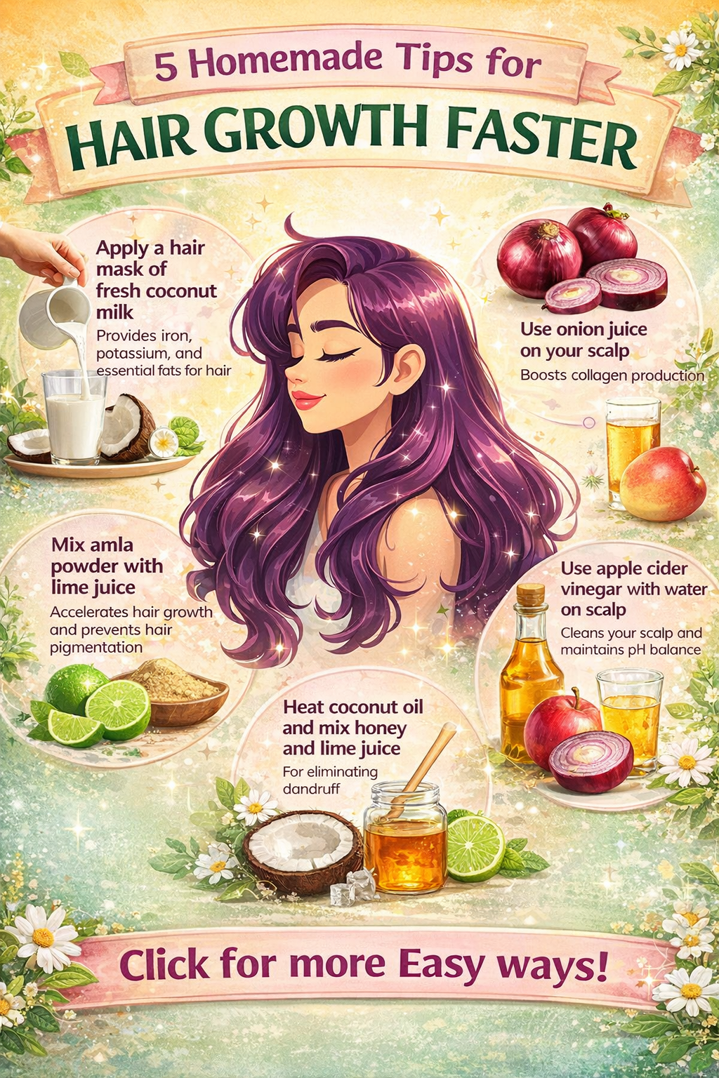 Growing healthy hair doesn’t have to be complicated or expensive. With the right habits, nutrition, and care routine, you can support stronger, thicker hair naturally. This guide breaks down the best tips for hair growth in a simple, realistic way—perfect for busy lifestyles.Whether you’re dealing with hair thinning, breakage, or slow growth, these easy strategies can help you get healthier hair over time.Understand How Hair Growth Works (H2)Hair grows in cycles:Anagen (growth phase) – lasts 2–7 yearsCatagen (transition phase)Telogen (resting/shedding phase)Healthy hair growth depends on scalp health, blood circulation, nutrition, and gentle care. Knowing this makes it easier to choose the right hair-growth habits.Eat for Hair Growth (H2)What you eat directly affects your hair.Best Nutrients for Hair GrowthProtein: Eggs, fish, beans, lean meatBiotin: Nuts, seeds, bananasIron: Spinach, lentils, red meatOmega-3s: Salmon, flaxseedsVitamin C: Citrus fruits, berries🥗 A balanced diet is one of the easiest and most effective hair growth tips.Scalp Care Is Non-Negotiable (H2)A healthy scalp grows healthy hair.Easy Scalp Care TipsMassage your scalp 5–10 minutes dailyUse gentle, sulfate-free shampooExfoliate scalp once a weekKeep scalp clean but not overwashed💡 Scalp massages improve blood circulation and stimulate hair follicles.Wash Your Hair the Right Way (H2)Overwashing or harsh products can slow hair growth.Simple Washing RulesWash 2–3 times per weekUse lukewarm waterFocus shampoo on scalp, not endsAlways condition mid-lengths and ends🚿 Avoid hot water—it weakens hair strands.Oil Your Hair (But Do It Right) (H2)Hair oiling nourishes the scalp and reduces breakage.Best Oils for Hair GrowthCoconut oilCastor oilArgan oilRosemary oil (diluted)Massage oil into scalp 1–2 times weekly and wash after 1–2 hours.Protect Hair from Damage (H2)Hair breaks faster than it grows—protection is key.Damage-Prevention TipsLimit heat stylingUse heat protectantAvoid tight hairstylesSleep on silk or satin pillowcasesUse wide-tooth combsLess breakage = longer-looking hair.Trim for Growth (H2)Trimming doesn’t make hair grow faster, but it prevents split ends from traveling upward.✂ Trim every 8–12 weeks for healthier-looking hair.Hydration & Hair Growth (H2)Dry hair breaks easily.Drink plenty of waterUse leave-in conditionersDeep-condition once a weekHydrated hair stays flexible and strong.Natural Remedies That Support Hair Growth (H2)These gentle options can complement your routine:Aloe vera gel for scalp soothingOnion juice (use sparingly)Rice water rinse (protein boost)Green tea scalp rinse🌿 Natural remedies work best when used consistently.Reduce Stress for Better Hair Growth (H2)Stress can trigger hair shedding.Simple Stress-Relief HabitsExercise regularlyGet enough sleepPractice deep breathingTake short breaks during the dayCalm mind = healthier hair growth cycle.Common Hair Growth Mistakes to Avoid (H2)Overusing heat toolsSkipping conditionerExcessive chemical treatmentsTight ponytails or braidsExpecting instant resultsHair growth takes time—consistency matters.Practical Daily Hair Growth Routine (H2)Morning: Gentle brushing + hydrationWeekly: Oil massage & deep conditioningMonthly: Trim split endsDaily: Balanced diet & stress managementSimple habits lead to long-term results.ConclusionHealthy hair growth doesn’t require complicated routines or expensive products. By following these best tips for hair growth, you can strengthen your hair, reduce breakage, and support natural growth the easy way.Consistency, patience, and gentle care are the real secrets. Start with small changes today, and your hair will thank you over time ✨
