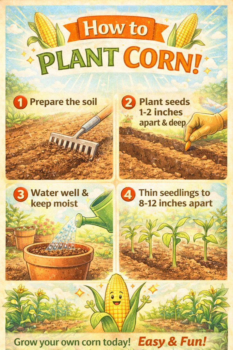 Corn is one of the most rewarding crops to grow at home. Whether you dream of sweet corn on the cob at summer barbecues or want to explore home gardening basics, corn is a fantastic choice. While it may seem like a crop best left to large farms, planting corn in your own garden is simpler than many people think.This guide, “Make it easy: How to plant corn!”, is designed to break the process down into clear, manageable steps. From choosing the right variety to planting, caring for, and harvesting your corn, you’ll learn everything you need to succeed. The advice in this article is suitable for gardeners in the United States, United Kingdom, and Canada, whether you’re a beginner or looking to improve your harvest.Why Grow Corn at Home?Growing corn at home offers both practical and personal benefits.Fresh Flavor You Can’t BeatHomegrown corn is sweeter and more flavorful than store-bought varieties because it’s eaten shortly after harvest, when sugars are at their peak.Cost-Effective and RewardingCorn plants produce multiple ears per plant, making them a cost-effective crop. Plus, there’s nothing quite like harvesting corn you planted yourself.Great for Learning Garden SkillsCorn is an excellent crop for learning about spacing, pollination, and seasonal planting. It’s a perfect way to make it easy: how to plant corn! while building gardening confidence.Understanding Corn BasicsBefore planting, it’s helpful to understand how corn grows.Corn Is Wind-PollinatedCorn relies on wind—not insects—for pollination. This is why planting corn in blocks rather than long single rows is so important.Corn Is a Warm-Season CropCorn needs warm soil and plenty of sunlight. It will not tolerate frost and grows best during late spring and summer.Choosing the Right Corn VarietyTypes of CornThere are several types of corn, and choosing the right one depends on your goal:Sweet corn – Best for eating freshPopcorn – For popping at homeFlint corn – Decorative and traditional usesDent corn – Typically used for animal feedFor most home gardeners, sweet corn is the best choice.Choosing Varieties for Your RegionGardeners in the US, UK, and Canada should look for varieties suited to their growing season length. Short-season varieties are ideal for cooler climates.When to Plant CornSoil Temperature MattersCorn seeds need soil temperatures of at least 50–60°F (10–16°C) to germinate properly.In warmer regions: Late springIn cooler regions: Late spring to early summerPlanting too early is one of the most common mistakes when learning how to plant corn.Frost-Free TimingAlways wait until the risk of frost has passed. Corn seedlings are very sensitive to cold.Preparing the Soil for CornChoose a Sunny LocationCorn needs full sun, meaning at least 6–8 hours of direct sunlight daily.Soil RequirementsCorn grows best in:Loose, well-draining soilSoil rich in organic matterSlightly acidic to neutral pHBefore planting, mix in compost or aged manure to boost nutrients.Make It Easy: How to Plant Corn (Step-by-Step)Step 1: Plan Your LayoutPlant corn in blocks rather than rows. For example, four short rows side by side allow better wind pollination.Step 2: Plant the SeedsPlant seeds 1–1.5 inches deepSpace seeds 8–12 inches apartSpace rows about 30–36 inches apartThis spacing gives plants room to grow while supporting pollination.Step 3: Water GentlyWater the soil thoroughly after planting but avoid washing seeds away. Keep soil consistently moist during germination.Step 4: Thin Seedlings if NeededIf multiple seedlings sprout too close together, thin them to the strongest plant.Following these steps helps truly make it easy: how to plant corn! for any gardener.Caring for Corn PlantsWatering NeedsCorn needs consistent moisture, especially during:TasselingSilkingEar developmentAim for about 1–1.5 inches of water per week.Fertilizing CornCorn is a heavy feeder. Use:Compost at planting timeNitrogen-rich fertilizer once plants reach knee heightThis supports strong stalks and full ears.MulchingApply mulch around plants to:Retain moistureControl weedsMaintain soil temperaturePollination Tips for Better Corn EarsPoor pollination leads to missing kernels. To improve pollination:Plant in blocksGently shake stalks when tassels appearAvoid planting corn varieties too close togetherGood pollination is key when learning how to plant corn successfully.Common Problems and How to Avoid ThemPoor GerminationCaused by cold soil or old seeds. Always plant in warm soil with fresh seeds.Weak or Falling StalksUsually due to low nitrogen or poor spacing. Feed regularly and avoid overcrowding.PestsCommon pests include birds, raccoons, and corn earworms. Use garden netting and check ears regularly.When and How to Harvest CornSigns Corn Is ReadyCorn is ready to harvest when:Silks turn brown and dryKernels are plumpJuice from kernels is milky, not clearHarvesting TipsTwist ears downward and pull firmly. Harvest in the morning for the sweetest flavor.Freshly harvested corn should be eaten as soon as possible for the best taste.Practical Tips to Make Corn Growing EasierSuccession plant every 2–3 weeks for extended harvestLabel varieties to track performanceWater deeply rather than frequentlyHarvest promptly to prevent pestsUse companion plants like beans or squashThese tips help reinforce the idea to make it easy: how to plant corn! from start to finish.Growing Corn in Small Gardens or ContainersYes, you can grow corn in smaller spaces!Container Corn TipsUse large containers (at least 12 inches deep)Plant multiple plants per container for pollinationChoose dwarf or compact varietiesThis option works well for patios and urban gardens.Why Planting Corn Is Worth the EffortCorn may take space and nutrients, but the payoff is incredible. Homegrown corn tastes better, looks beautiful in the garden, and provides a satisfying harvest. Plus, corn plants add height and structure to garden beds.Once you understand how to plant corn, the