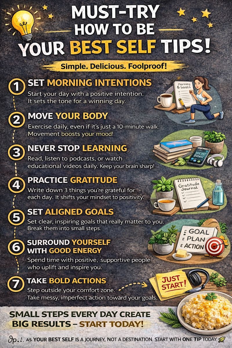 Becoming your best self isn’t about perfection—it’s about progress. Small, intentional changes in your daily routine can lead to big improvements in your mindset, confidence, health, and happiness. That’s exactly why so many people are searching for must-try how to be your best self tips!In this detailed, SEO-optimized guide, you’ll discover practical, realistic, and motivating strategies to help you grow mentally, physically, and emotionally. These tips are designed for everyday life and resonate with readers in the United States, United Kingdom, and Canada.What Does “Being Your Best Self” Really Mean?Being your best self looks different for everyone. At its core, it means:Living with purpose and self-awarenessTaking care of your mind and bodyContinuously learning and improvingAligning your actions with your valuesThe goal isn’t to compare yourself to others—but to become a better version of who you were yesterday.Why Personal Growth Matters More Than EverIn a fast-paced, constantly connected world, intentional self-growth is essential.Benefits of Becoming Your Best SelfIncreased confidence and self-esteemBetter mental and physical healthStronger relationshipsImproved focus and productivityGreater life satisfactionThat’s why these must-try how to be your best self tips! are so powerful—they help you build a life you actually enjoy.Build a Strong Morning RoutineHow you start your day sets the tone for everything else.H3: Morning Habits That WorkWake up at a consistent timeDrink water first thing in the morningStretch or move your bodyAvoid your phone for the first 30 minutesSet 1–3 priorities for the dayA simple routine builds discipline and clarity without overwhelming you.Take Care of Your Mental HealthYour mindset shapes your reality.H3: Mental Wellness TipsPractice gratitude daily (write down 3 things)Limit negative self-talkTake breaks from social mediaLearn to say no without guiltAsk for help when neededMental health is a cornerstone of all must-try how to be your best self tips!Improve Your Physical Health (Without Extremes)You don’t need drastic diets or intense workouts to feel better.H3: Simple Physical Wellness TipsMove your body at least 30 minutes a dayEat mostly whole, nourishing foodsGet 7–9 hours of quality sleepStay hydratedListen to your bodyConsistency matters more than intensity.Set Clear, Achievable GoalsGoals give direction and motivation.H3: Smart Goal-Setting TipsBreak big goals into small stepsFocus on progress, not perfectionTrack your wins (even small ones)Adjust goals when life changesClear goals are essential if you want real, lasting growth.Develop Self-Discipline and Healthy HabitsMotivation fades—habits stay.H3: Habit-Building HacksStart with one habit at a timeStack new habits onto existing onesRemove temptations from your environmentReward consistency, not resultsThese strategies make must-try how to be your best self tips! easier to follow long term.Surround Yourself With the Right PeopleYour environment shapes who you become.H3: Relationship TipsSpend time with people who inspire youLimit exposure to constant negativityCommunicate openly and honestlyInvest in supportive friendshipsHealthy relationships fuel personal growth.Learn Something New RegularlyGrowth comes from curiosity.H3: Easy Ways to Keep LearningRead books or listen to audiobooksTake online coursesLearn a new skill or hobbyReflect on mistakes instead of fearing themContinuous learning keeps your mind sharp and confident.Practice Self-ReflectionSelf-awareness is a superpower.H3: Reflection HabitsJournal your thoughts and emotionsAsk yourself what’s working and what isn’tReview your week every SundayCelebrate progress, not just achievementsReflection helps align your actions with your goals.Take Care of Your Emotional Well-BeingEmotional strength isn’t about ignoring feelings—it’s about understanding them.H3: Emotional Growth TipsAllow yourself to feel without judgmentSet healthy boundariesForgive yourself for past mistakesPractice mindfulness or meditationEmotional balance is a key part of must-try how to be your best self tips!Stop Comparing Yourself to OthersComparison steals joy and confidence.H3: Mindset ShiftsFocus on your own journeyRemember social media shows highlights, not realityMeasure progress against your past selfYour path is unique—and that’s your strength.Create a Life That Feels BalancedBeing your best self doesn’t mean doing more—it means doing what matters.Balance TipsSchedule rest, not just workMake time for joy and hobbiesProtect your energyRedefine success on your own termsBalance prevents burnout and supports long-term growth.Common Mistakes to Avoid in Self-ImprovementAvoid These TrapsTrying to change everything at onceBeing too hard on yourselfWaiting for motivation instead of taking actionQuitting when progress feels slowGrowth takes time—and that’s okay.Conclusion: Must-Try How to Be Your Best Self Tips!Becoming your best self is a lifelong journey, not a destination. With consistent habits, self-awareness, and compassion for yourself, meaningful change is absolutely possible. These must-try how to be your best self tips! aren’t about pressure—they’re about empowerment.Start small. Stay consistent. Celebrate progress. And remember: the best version of you is built one day at a time. 🌱✨💪