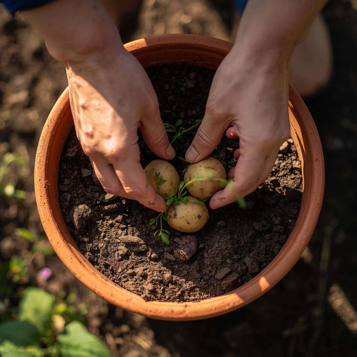 Grow an abundant harvest of homegrown potatoes right on your patio, balcony, or backyard — no garden bed required!You don’t need a sprawling farm to enjoy freshly dug potatoes. With just a few containers, some soil, and the right know-how, you can grow delicious, tender potatoes at home — even in small spaces! These Secret How to Plant Potatoes in a Container Tips! will help you maximize your harvest, keep plants healthy, and enjoy that unbeatable farm-to-table flavor.Let’s dig into everything you need to know to start your container potato garden like a pro. 🌿🪴 Introduction: Why Grow Potatoes in Containers?Potatoes are one of the easiest and most rewarding vegetables to grow — and container gardening makes them accessible to everyone. Whether you live in a city apartment or have limited yard space, growing potatoes in containers keeps things clean, pest-free, and manageable.This method also gives you control over soil quality, watering, and sunlight, which means healthier plants and tastier potatoes. Plus, harvesting is fun — just tip over the container and watch your crop tumble out!So if you’re ready for the best potato-growing experience ever, follow these Secret How to Plant Potatoes in a Container Tips!🌱 H2: Choosing the Right ContainerThe first step to success is selecting the right container for your potato plants.🪣 Size MattersUse a container that’s at least 16 inches (40 cm) deep and 12 inches (30 cm) wide.Bigger containers mean more room for tubers to grow, resulting in larger yields.🧺 Popular options include grow bags, large buckets, trash bins (with drainage holes), or even old storage tubs.🌿 Drainage is KeyPotatoes hate soggy soil. Ensure your container has multiple drainage holes at the bottom to prevent waterlogging and root rot.🥔 H2: Picking the Best Potatoes to PlantNot all potatoes are created equal — and for containers, you’ll want seed potatoes that are certified disease-free.🧅 Top Varieties for Container Gardening:Yukon Gold: Creamy, buttery flavor — great all-rounder.Red Pontiac: Early maturing and perfect for smaller containers.Fingerling Potatoes: Fun, slender shape — ideal for gourmet dishes.Maris Piper (UK favorite): Perfect for mash and roast potatoes.💡 Pro Tip: Avoid using grocery store potatoes — they’re often treated to prevent sprouting and can carry diseases.🌞 H2: The Secret Soil MixGood soil is the foundation of great potatoes. Your container mix should be light, nutrient-rich, and well-draining.🌾 Best Soil Recipe for Potatoes:2 parts high-quality potting soil1 part compost or aged manure1 part perlite or coarse sand (for drainage)Mix thoroughly and fill your container about ⅓ full to start.🌱 Potatoes love loose soil — it allows tubers to expand easily without deforming.🪴 H2: Planting Potatoes Step-by-StepFollow these simple steps for guaranteed success:🥄 1. Prepare Your Seed PotatoesIf your seed potatoes are large, cut them into chunks with at least one “eye” (the sprouting point). Let them dry for a day or two to prevent rot.🌰 2. Start PlantingPlace 3–4 seed potato pieces on top of the soil in your container. Space them evenly apart. Cover with another 3–4 inches of soil.☀️ 3. Give Them Sun & WaterPlace your container in a sunny spot (at least 6–8 hours of direct sunlight daily).Keep the soil consistently moist but not soggy.🌿 4. The Secret “Hilling” MethodAs your potato plants grow to about 6–8 inches tall, add more soil to cover the stems halfway. This encourages new tubers to grow along the buried stems.Repeat this process every 1–2 weeks until the container is nearly full.🪴 This “hilling” technique is one of the biggest secrets behind growing lots of potatoes in limited space!🌼 H2: Caring for Your Potato Plants💧 Watering WiselyPotatoes need consistent moisture. Water deeply whenever the top inch of soil feels dry. Avoid overwatering — it can cause tuber rot.🌿 Fertilizing for Bigger YieldsUse a balanced fertilizer (like 10-10-10 NPK) or one formulated for root vegetables. Apply every 3–4 weeks during active growth.🌞 Sunlight & AirflowGood airflow prevents fungal diseases. Avoid crowding containers and make sure leaves can dry quickly after watering.🌤 Potatoes thrive in warm days and cool nights — perfect for spring and early summer growing.🌻 H2: Knowing When to HarvestYour patience will pay off — but knowing when to harvest is key!⏳ Early Potatoes (New Potatoes):Ready in 10–12 weeks after planting.Harvest when plants start to flower.🥔 Main Crop Potatoes:Ready in 15–20 weeks.Wait until the foliage turns yellow and dies back before harvesting.To harvest, simply tip over the container onto a tarp or garden bed and collect your beautiful homegrown potatoes.🧺 Let them air dry for a few hours before storing in a cool, dark place.🌿 H2: Common Mistakes to AvoidOvercrowding: Too many seed potatoes in one pot = small yield.Poor Drainage: Always check for holes before planting.Overwatering: Leads to rot and fungal disease.Too Little Soil: Forgetting to “hill up” can limit tuber formation.Not Enough Sun: Potatoes love light — aim for full sun daily.🌱 H2: Bonus Tips for Huge Potato Harvests!Start Early: Plant in early spring once the risk of frost is gone.Rotate Varieties: Try new types each season for variety and disease prevention.Reuse the Soil Carefully: If reusing, mix in fresh compost to restore nutrients.Mulch the Top: Helps retain moisture and keep weeds down.Grow in Stages: Stagger planting every few weeks for a longer harvest season.🧡 With these insider secrets, even small containers can yield a surprisingly large crop!🌾 Conclusion: Harvest Happiness in a ContainerAnd there you have it — your complete guide to Secret How to Plant Potatoes in a Container Tips! 🥔🌿Container gardening makes it easy for anyone — from city dwellers to country gardeners — to enjoy the satisfaction of g
