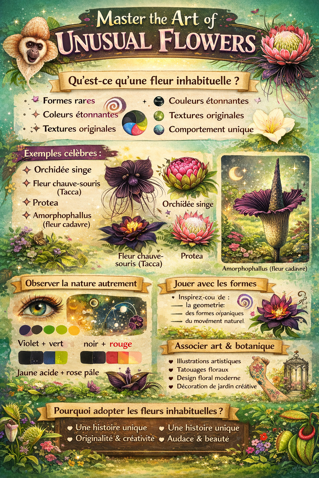 A garden should be more than just a collection of plants—it should be an experience. If you’re looking to stand out and create a truly memorable outdoor space, the answer lies in embracing the unexpected. Transform your garden with unusual flowers! These rare, exotic, and eye-catching blooms add personality, intrigue, and a sense of wonder to any garden.Whether you garden in the United States, the United Kingdom, or Canada, unusual flowers can thrive with the right care and planning. From dramatic shapes to striking colors and fascinating growth habits, these plants turn ordinary gardens into extraordinary landscapes. In this guide, you’ll discover how to choose, grow, and showcase unusual flowers to elevate your garden like never before.Why Choose Unusual Flowers for Your Garden?Unusual flowers do more than look different—they change the entire mood of your garden.Benefits of Growing Unusual FlowersVisual impact: Unique shapes and colors create instant focal points.Conversation starters: Guests are naturally drawn to rare and exotic plants.Biodiversity: Many unusual flowers attract pollinators like bees and butterflies.Creative expression: They allow you to personalize your garden style.By choosing distinctive blooms, you truly transform your garden with unusual flowers!What Makes a Flower “Unusual”?An unusual flower may stand out because of:Unexpected colors (black, deep blue, or multicolored petals)Unique shapes (spiky, tubular, or sculptural forms)Rare blooming habits or texturesExotic or uncommon originsThese characteristics help unusual flowers break away from traditional garden designs.Popular Unusual Flowers to Transform Your GardenBlack Bat Flower (Tacca chantrieri)Known for its dramatic dark petals and long whisker-like bracts, this plant adds mystery and elegance. It thrives in warm, humid environments and is ideal for greenhouses or sheltered gardens.Passionflower (Passiflora)With intricate, otherworldly blooms, passionflowers are both beautiful and functional. Many varieties are hardy in the UK, US, and parts of Canada, making them a popular choice for fences and trellises.ProteaNative to South Africa, proteas offer bold textures and long-lasting blooms. They prefer well-drained soil and full sun, making them ideal for warmer regions or container growing.Cobra Lily (Darlingtonia californica)This carnivorous plant has a striking, hooded shape resembling a cobra. It’s perfect for gardeners who want something truly unique and enjoy specialty plant care.Choosing the Right Unusual Flowers for Your ClimateUnited StatesWith diverse climate zones, the US offers excellent opportunities for unusual flowers. Tropical plants thrive in southern regions, while hardy exotics work well in northern states.United KingdomCooler temperatures mean choosing cold-tolerant unusual flowers or growing tender plants in greenhouses. Hardy passionflowers and exotic-looking perennials are great options.CanadaShorter growing seasons require fast-growing or cold-hardy unusual flowers. Starting seeds indoors and using containers can extend the growing period.Matching plants to your climate ensures success when you transform your garden with unusual flowers!Preparing Your Garden for Unusual FlowersSoil PreparationMost unusual flowers need:Well-draining soilRich organic matterBalanced pH levels suited to each plantAdding compost improves soil structure and supports healthy root development.Sunlight and PlacementObserve how sunlight moves across your garden.Place sun-loving unusual flowers in open areas.Shade-tolerant exotics thrive near trees or walls.Good placement highlights their beauty and supports healthy growth.How to Plant and Care for Unusual FlowersPlanting TipsFollow spacing recommendations to avoid overcrowding.Plant at the correct depth to prevent stress.Water thoroughly after planting.Ongoing CareMulch to retain moisture and regulate soil temperature.Water consistently, especially during dry periods.Use slow-release fertilizers for steady nutrition.Proper care ensures your garden remains vibrant and unique throughout the season.Using Unusual Flowers in Garden DesignCreating Focal PointsUse one or two unusual flowers as statement plants. Place them near entrances, pathways, or seating areas for maximum impact.Mixing with Traditional PlantsBalance is key. Pair unusual flowers with familiar greenery or simple blooms to prevent visual overload and create harmony.Container GardeningContainers allow you to showcase rare flowers while controlling soil and climate conditions. This is especially useful in cooler regions.Thoughtful design helps truly transform your garden with unusual flowers!Common Challenges and How to Overcome ThemGrowth IssuesSlow growth may indicate improper light or soil conditions.Yellowing leaves often signal overwatering.Pest and Disease ManagementInspect plants regularly for pests.Encourage beneficial insects.Remove affected foliage promptly.Staying proactive keeps your unusual flowers healthy and thriving.Practical Tips for SuccessResearch each flower’s specific needs before planting.Start with a few unusual varieties and expand gradually.Label plants to track care requirements.Protect sensitive flowers during extreme weather.These practical steps make managing exotic blooms easier and more enjoyable.Seasonal Interest with Unusual FlowersTo maintain visual interest year-round:Choose plants with staggered bloom times.Include foliage-focused unusual plants.Combine annuals and perennials for continuous color.Seasonal planning ensures your garden never feels dull.ConclusionA garden filled with unusual flowers is a reflection of creativity, curiosity, and bold design. By selecting distinctive blooms, preparing your garden properly, and providing thoughtful care, you can create a space that feels truly one of a kind. Transform your garden with unusual flowers! and enjoy a landscape that surprises, inspires, and delights throughout the year.Whether you garden in the Uni